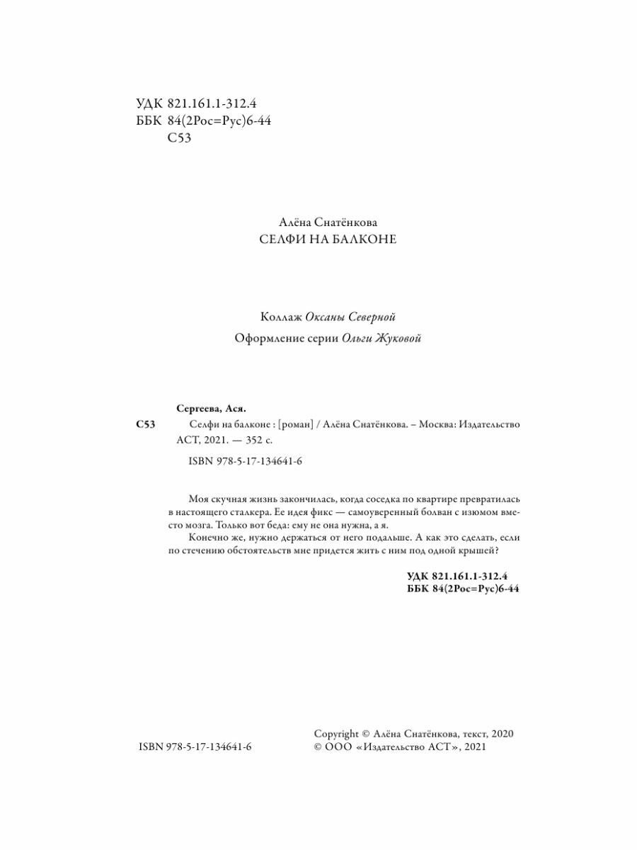 Книга: Селфи на балконе (Снатёнкова Алёна); ООО "Издательство Астрель", 2021