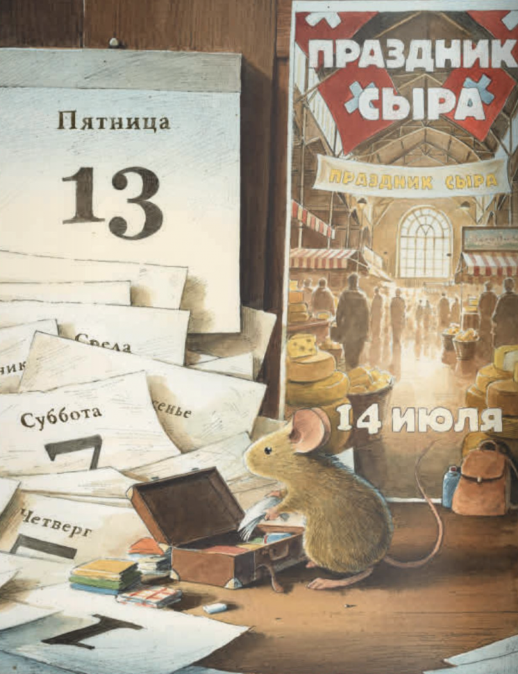 Начнем с завязки. Мышь опаздывает на фестиваль сыра и решает повернуть время вспять. Сама мысль найти сырную лавку не приходит ей в голову. Ну, допустим.