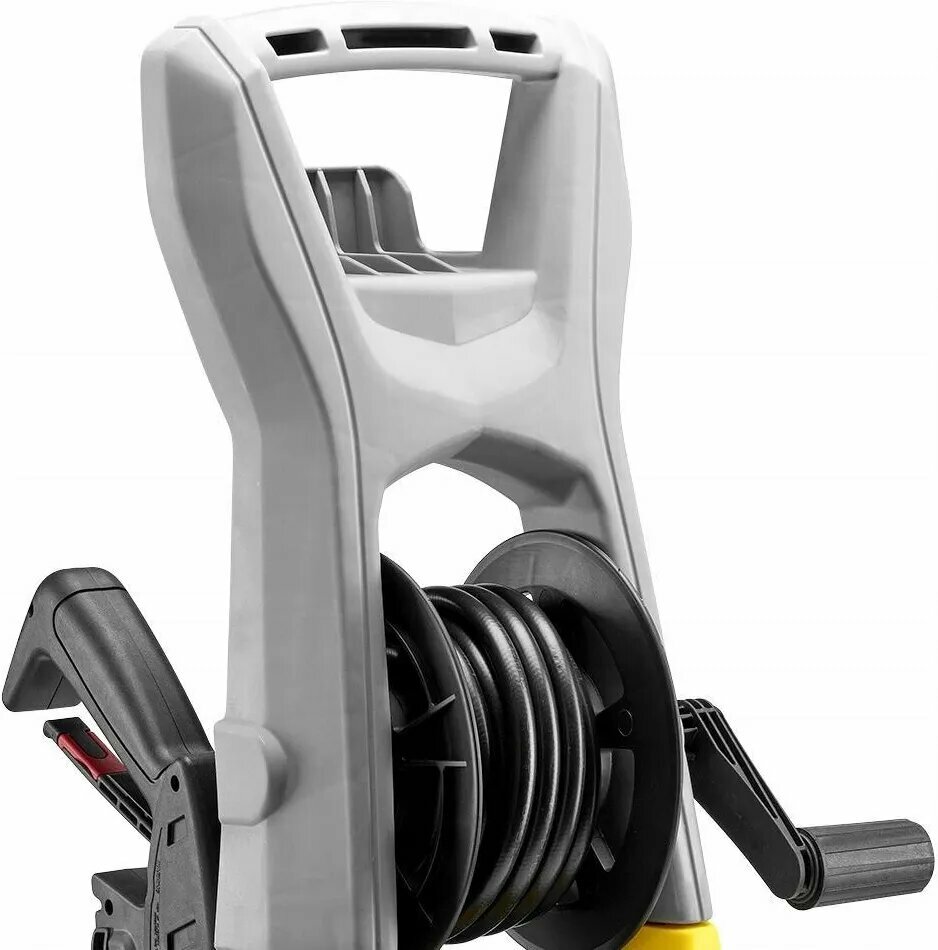 | Конструктивные особенности | бак для моющего средства, клавиши управления на пистолете, отсек для принадлежностей, колеса, катушка для шланга |