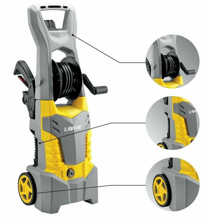 LAVOR это мойка высокого давления с поршнем из нержавеющей стали и алюминиевой головкой. Этот прибор имеет прямой впрыск моющего средства, систему автоматического отключения, которая предотвращает перегрев и продлевает срок службы прибора.