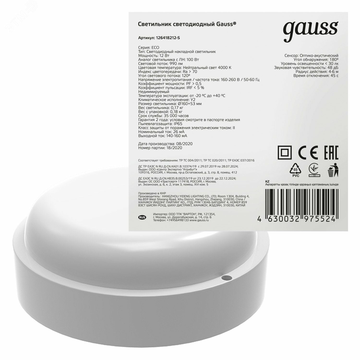 - Gauss ЖКХ ECO 2.0 | Сенсорный светильник с микроволновым датчиком движения