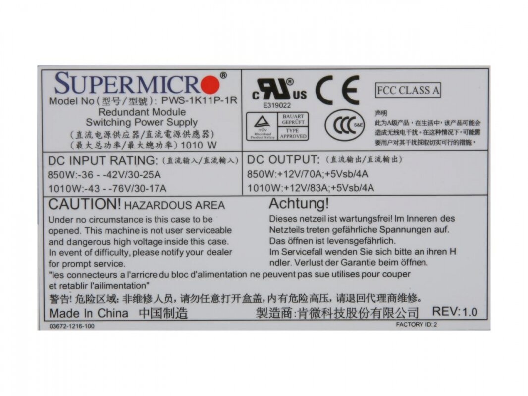 Блок питания Supermicro PWS-1K11P-1R