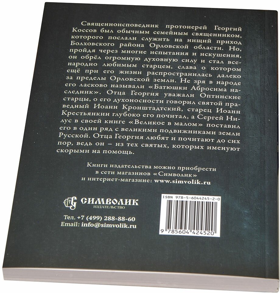 Часто приводится история, как отчаявшийся от бедности свяшенник пошёл к Амвросию Оптинскому, и тот, едва увидев его, закричал: "Иерей, что задумал! Бросать! Церковь ветхая! Сторой каменную церковь!" А что дальше было. не написано. Из данной книги мы узнаём о дальнейших событиях, судьбе человека, пришедшего к Авросию Оптинскому - священноисповедника Георгия Косова. Он не так хорошо известен народу, как Иоанн Кронштадский или Алексей Мечёв, но по уровню деятельности Георгия Косова можно поставить рядом с ними. Он вместили в свою жизнь две эпохи и обе прожил достойно. Читая незамысловатые воспоминания и предания, которые передаются из поколения в поколение, понимаешь, что это только малая часть того, что священник сделал, малая часть талантов, которыми он обладал. Хочется верить, что данная книга будет только началом в исследовании жизни святого. Можно облагодарить автора-составителя Николая Уссова за труд в ознакомлении читателей с жизнью этого интересного человека