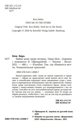 Сервис сравнения цен СкидкаГИД предлагает сравнить цены на товар «Книга: Найди меня среди шторма (Мон Кира); ООО "Издательство "Эксмо", 2021»