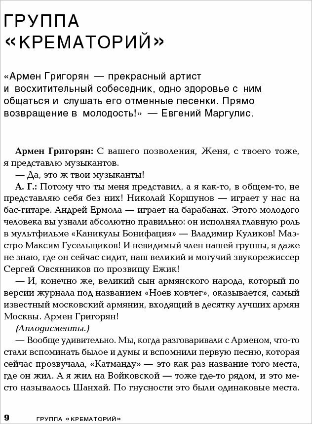 Поначалу сильно засомневалась – как это читать подарочное, считай, издание в электронке?! Ну вроде как хочется держать книгу в руках, слушать шелест страниц…Но на деле книга отлично зашла и в электронном виде, главное-то всё-таки не форма, а содержание. А уж содержание тут, поверьте мне, стоит кучи красивых обложек. Найк Борзов, Чиж, Свиридова, – все ребята из моей школьной юности, которых я просто обожаю, встретились в одной книжке)) Вот серьёзно, это как будто перенестись в студию к Маргулису и побывать по ту сторону экрана, послушать любимые песни… Вот кстати, ещё один плюс электронки – не надо бежать, искать гаджеты, чтобы включить трек, о котором говорят в интервью, просто перескакиваешь с одной вкладки на другую и готово. В общем, потрясающая книга, где одно интервью круче другого и реально невозможно оторваться!