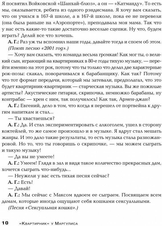 Книга основана на программе телеканала НТВ «Квартирник у Маргулиса». Но это не пересказывание выпусков в порядке их выхода, а альтернативная история музыки за последние 50 лет от лица одного из главных представителей музыкальной сцены.