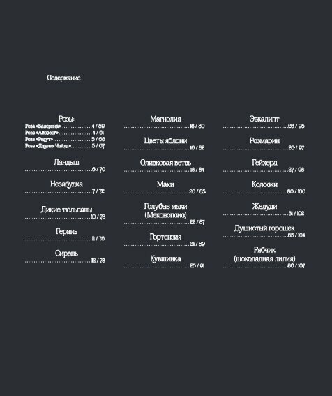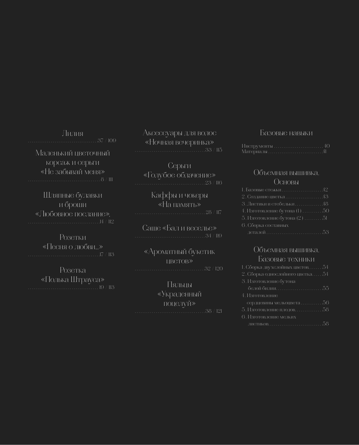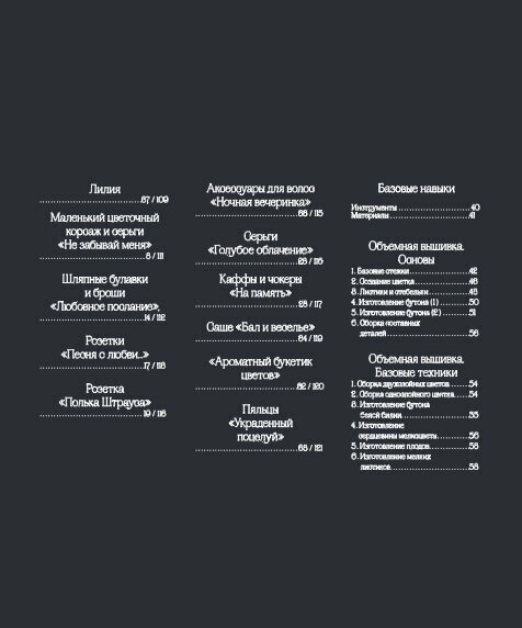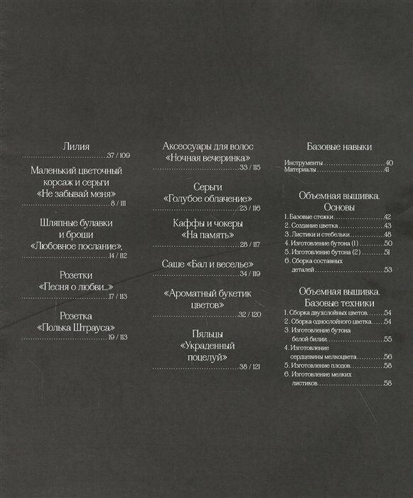 - Описание всех видов стежков, использованных в книге.