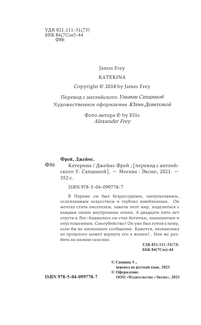 Книга: Катерина (Джеймс Фрей); Эксмо, Редакция 1, 2020