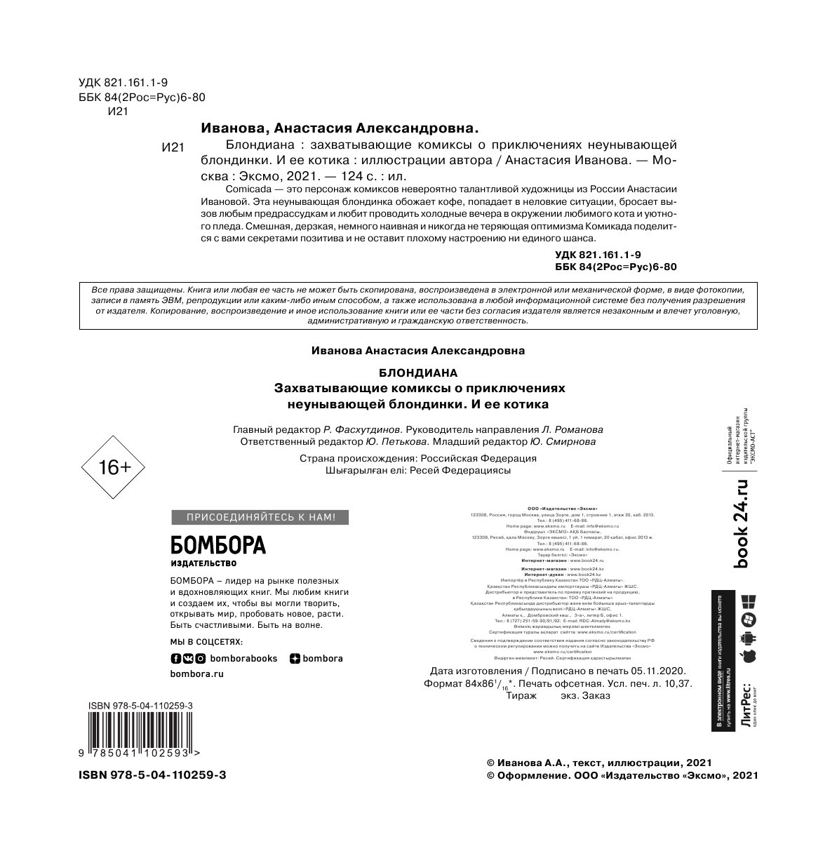 Блондиана. Захватывающие комиксы о приключениях неунывающей блондинки. И ее котика (Иванова Анастасия Александровна); Эксмо, БОМБОРА, 2021