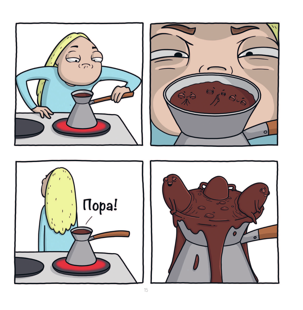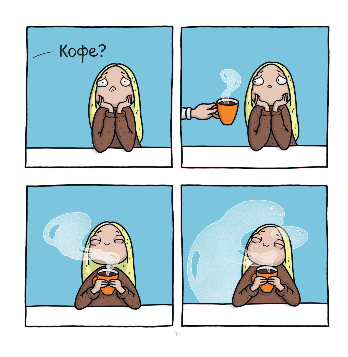 простые сюжеты, знакомые и забавные ситуации, милая рисовка, временами очень жизненный юмор. Работа Анастасии Ивановой поможет сделать ваш осенний/зимний/весенний вечер теплее.