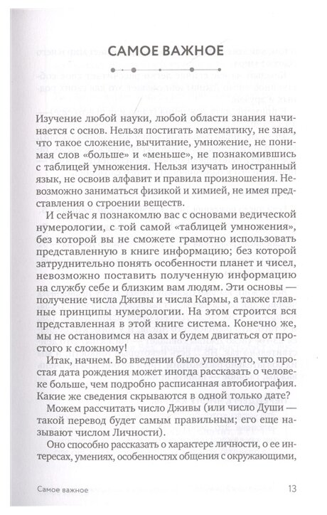 Всё-таки Веды- это наши корни, куда ни кинь. Автор очень вдумчиво и в то же время понятно объясняет связь нумерологии с Ведами. И у нас есть возможность посмотреть на свою дату и с точки зрения цифр и с точки зрения планет. Соединение нумерологии и астрологии даёт невероятно точный результат. Благодарю автора за хорошую подачу материала