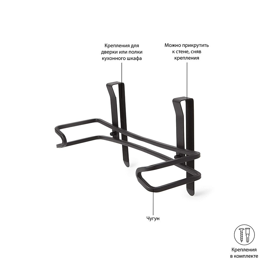 Подвесной держатель для бумажных полотенец Umbra , черный 1005752-040 в минималистичном дизайне поможет навести порядок и задействовать неиспользованное пространство на кухне. Аксессуар легко крепится к стене, дверце или полке шкафа. Удобное крепление-зажим позволит удобно зафиксировать держатель не только на стене, но и на дверце кухонного шкафчика. Изделие выполнено из квадратной металлической проволоки, покрытой черной краской и выгнутой в графическую линию. Поставляется со всем монтажным оборудованием.