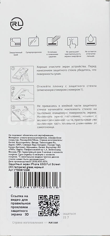На сегодняшний день товар «Защитное стекло RedLine для Apple iPhone X/XS 3D Full Glue (черная рамка) Защитное стекло для Apple iPhone X/XS 3D Full Glue (черная рамка)» можно купить с кешбеком в 1 магазине: МегаФон