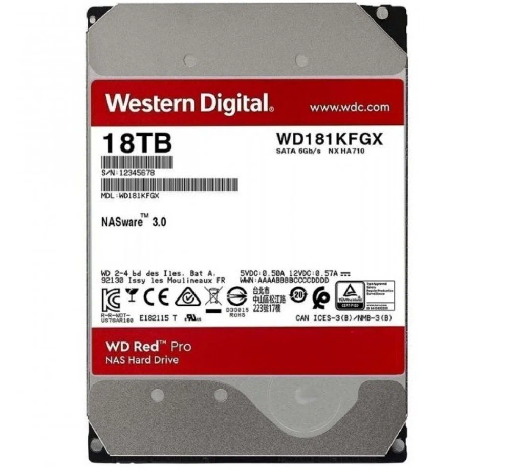 Жесткий диск WD Red Pro 18ТБ HDD SATA III 3.5" WD181KFGX