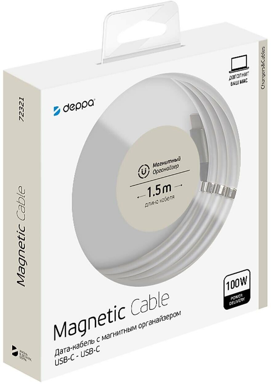 Кабель DEPPA Magnetic_100 W USB Type-C (m) USB Type-C (m) 1.5м белый [72322]
