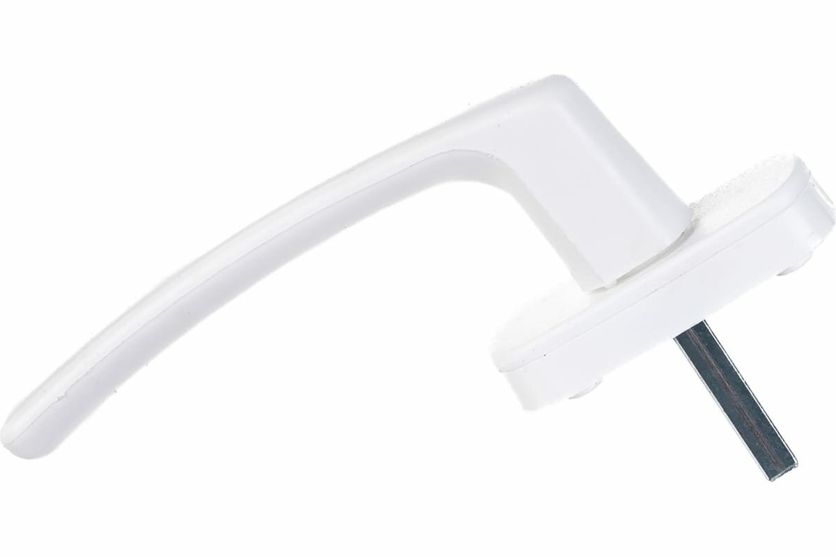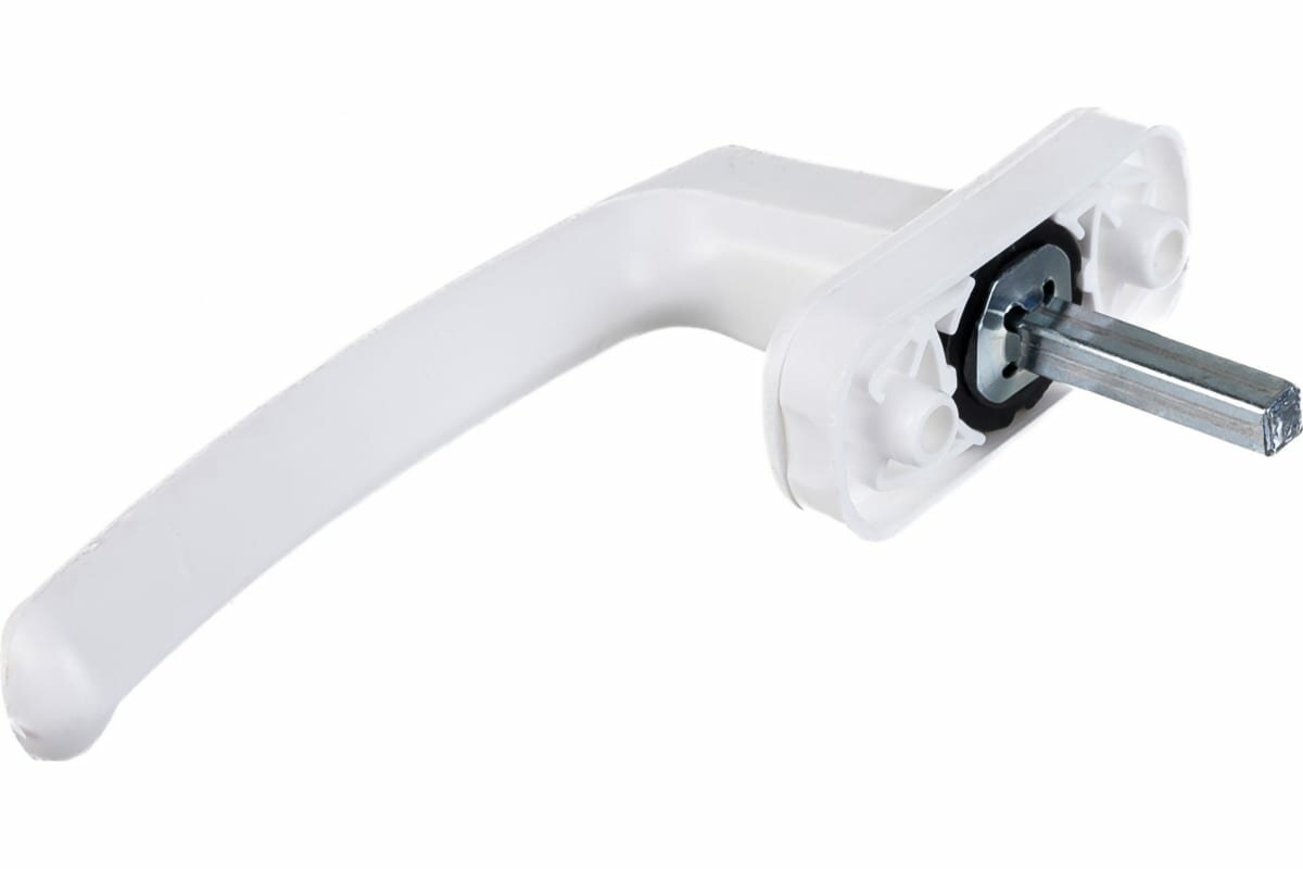Белая пластиковая оконная ручка, предназначенная для установки на окна из ПВХ-профиля, обеспечит легкое запирание створки окна с помощью вращения.