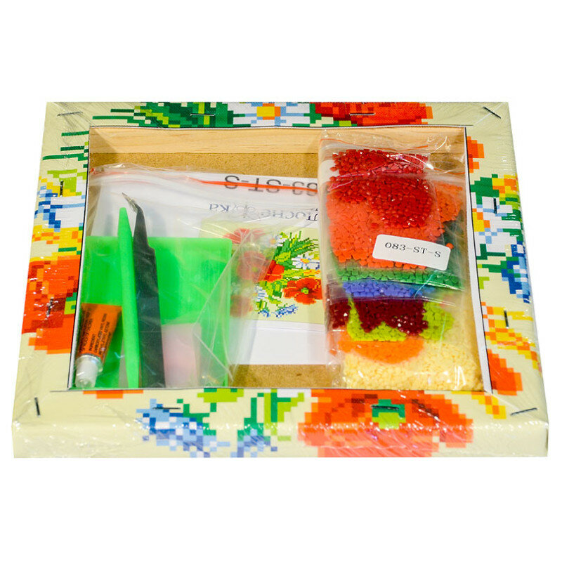 | Комплектация | Холст на подрамнике с клеевой основой, Условные обозначения, Акриловые камни-стразы, Жидкий клей, пинцет, Блюдце, Инструкция, Крепеж для подвешивания. |