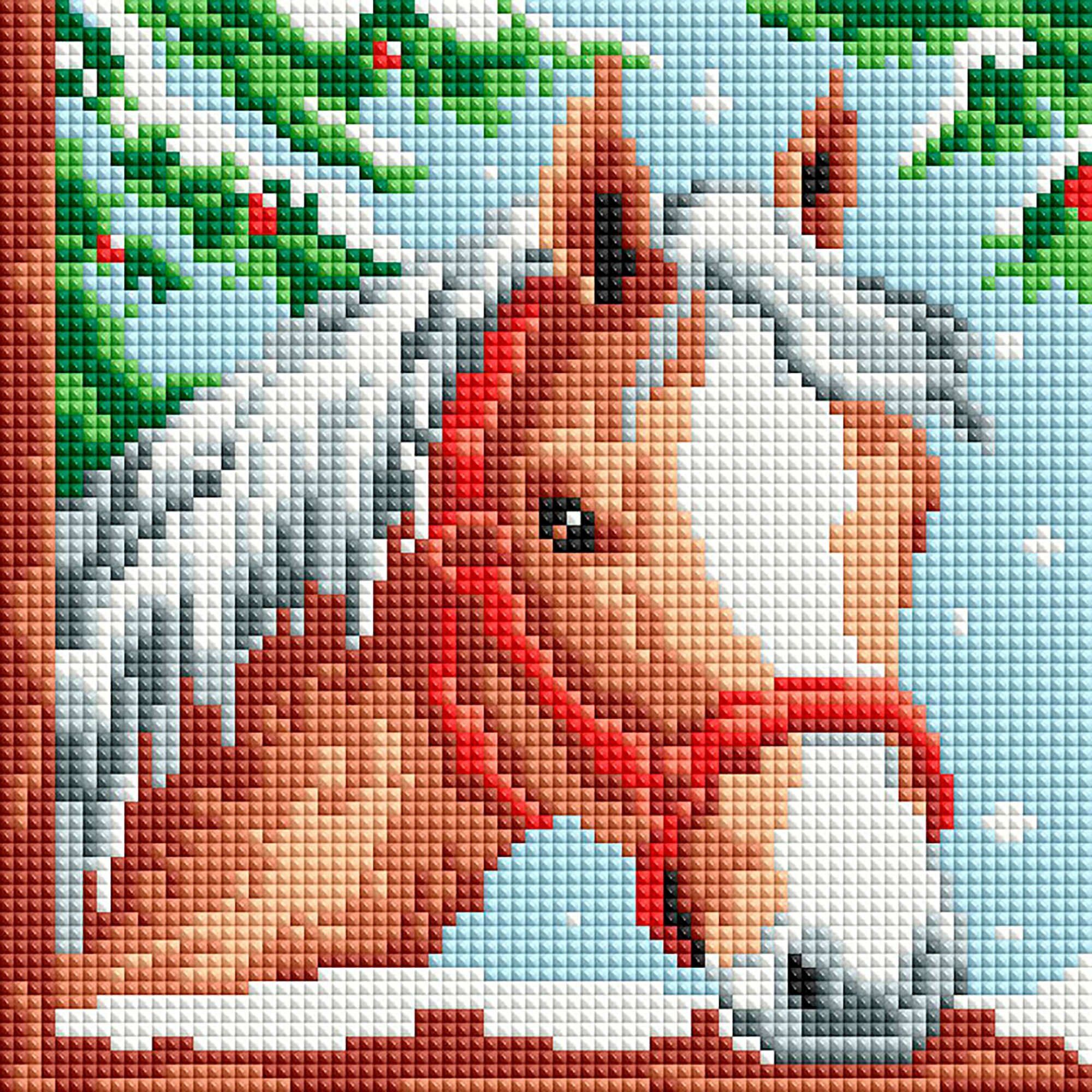 По сюжету картины результатом вашей работы станет блестящее изображение лошадки на фоне еловых веток и падающего снега. Какая волшебная атмосфера!
