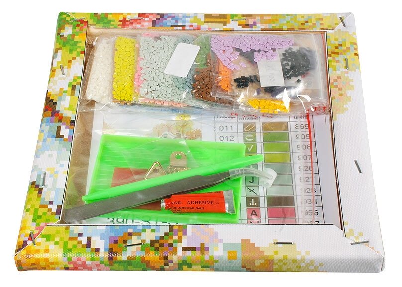 Для реализации процесса понадобится: свободное время и минимум усилий. Алмазная мозаика способствует тому, чтобы ваше времяпрепровождение наполнилось лёгким, увлекательным, а самое главное — полезным досугом. В комплектацию входит: основа работы - холст с нанесённой цветной схемой с контрастными условными обозначениями, набор акриловых камней, пластмассовый лоток с ячейками, металлический пинцет, тюбик клея и листовка-ключ.