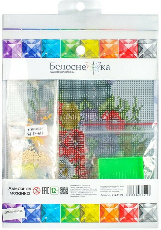 | Комплектация | плотная основа для картины с нанесенной схемой и клеевым покрытием; набор камней; пинцет; лоток; инструкция |