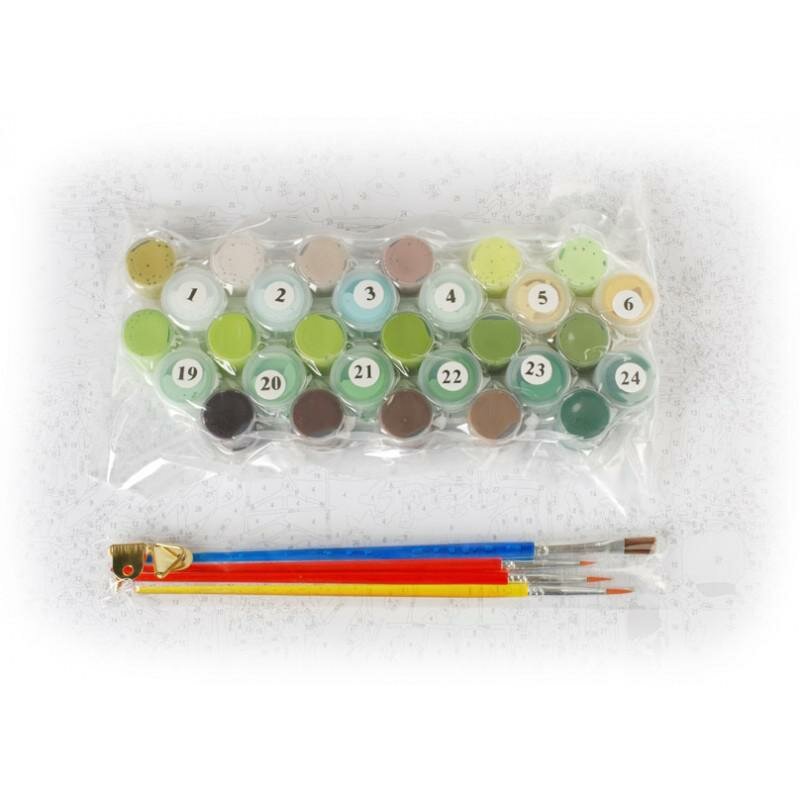 Цифрорисовашка устроена предельно просто: на основу из картона приклеена белая бумага, на которую нанесен рисунок, разбитый на пронумерованные сектора. Живопись по номерам размером 30*40 см. комплектуется акриловыми красками на водной основе, которые не обладают резким и неприятным запахом, что, в первую очередь, гарантирует безопасность при использовании красок. С помощью них и вашей усидчивости результат непременно оправдает личные ожидания и заставит восхищаться любого.