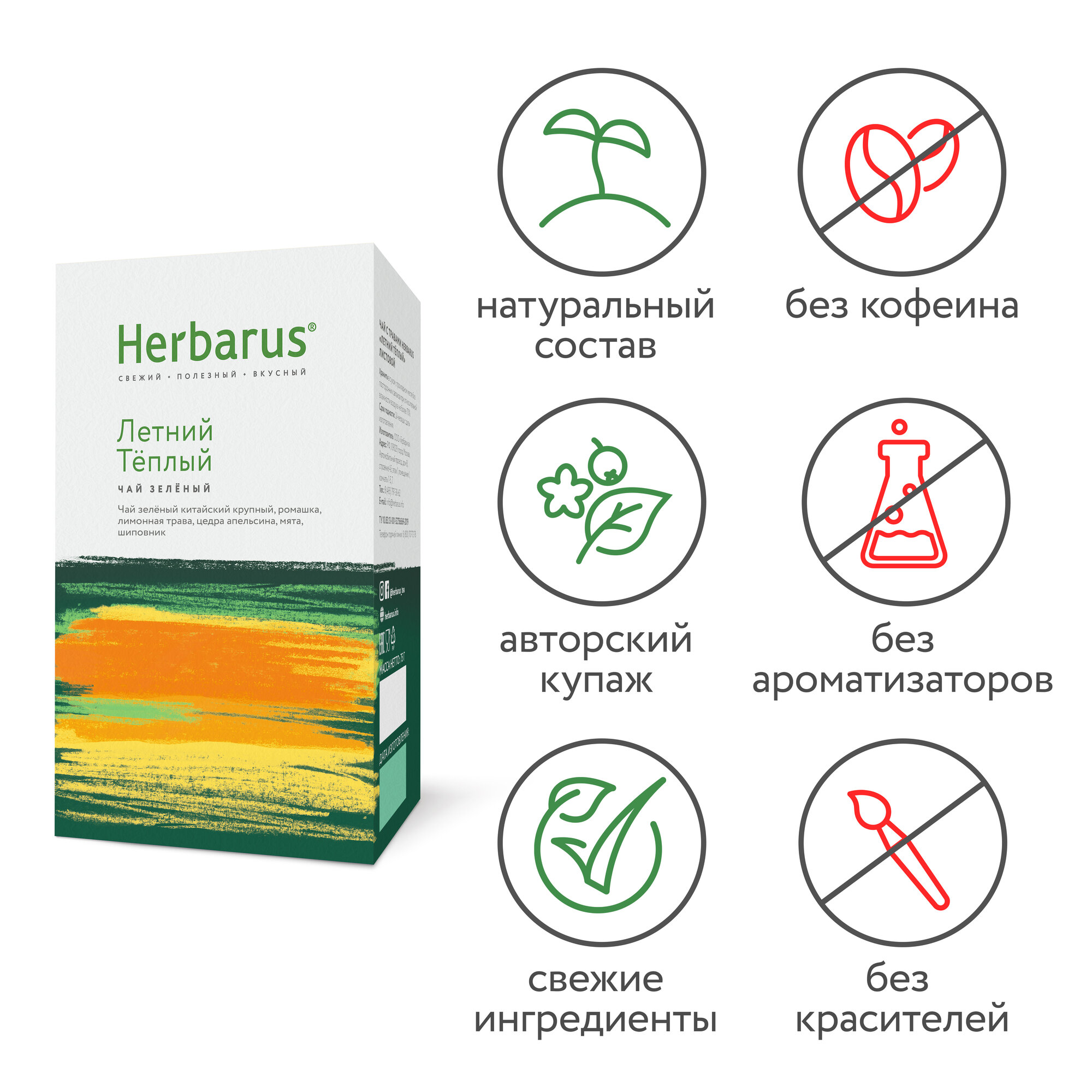 Чай Herbarus "Летний. Теплый" зеленый с травами 75гр (00-00000323)