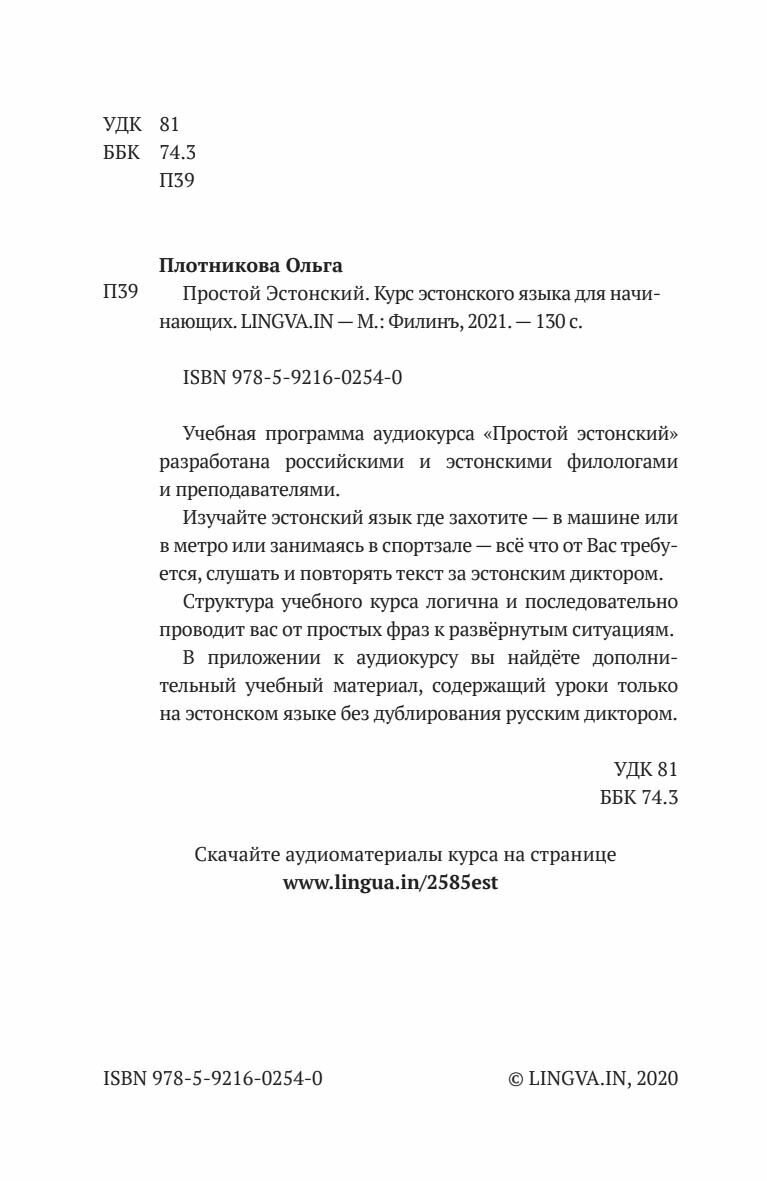 Простой Эстонский. Курс эстонского языка для начинающих. LINGVA.IN (Плотникова Ольга Анатольевна); Филинъ, 2021