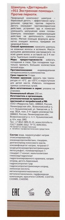 911 экстренная помощь шампунь "Дегтярный" фл. 150мл ООО Мирролла Лаб (1093149)