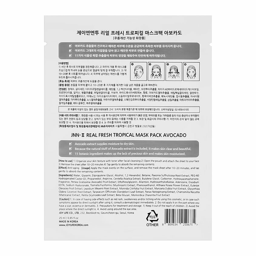 Маска тканевая для лица с авокадо Jnn-ii real fresh tropical 25 мл JOYLIFE CO., LTD. (1257659)
