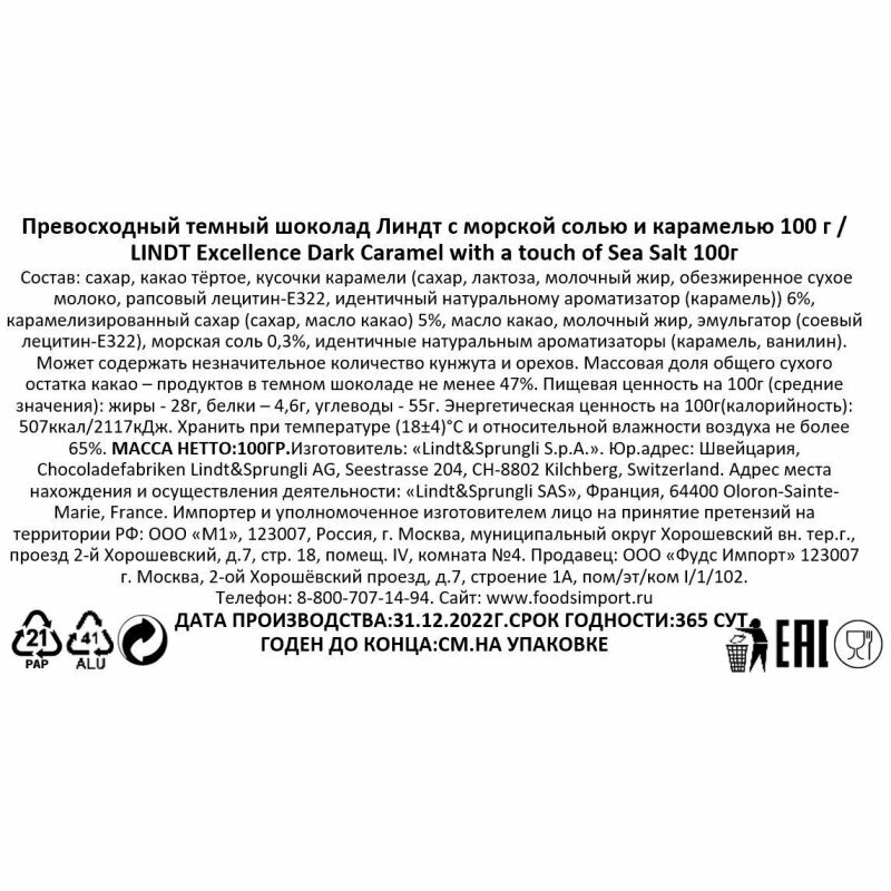 Шоколад Lindt Excellence Темный с карамелью и морской солью 100г