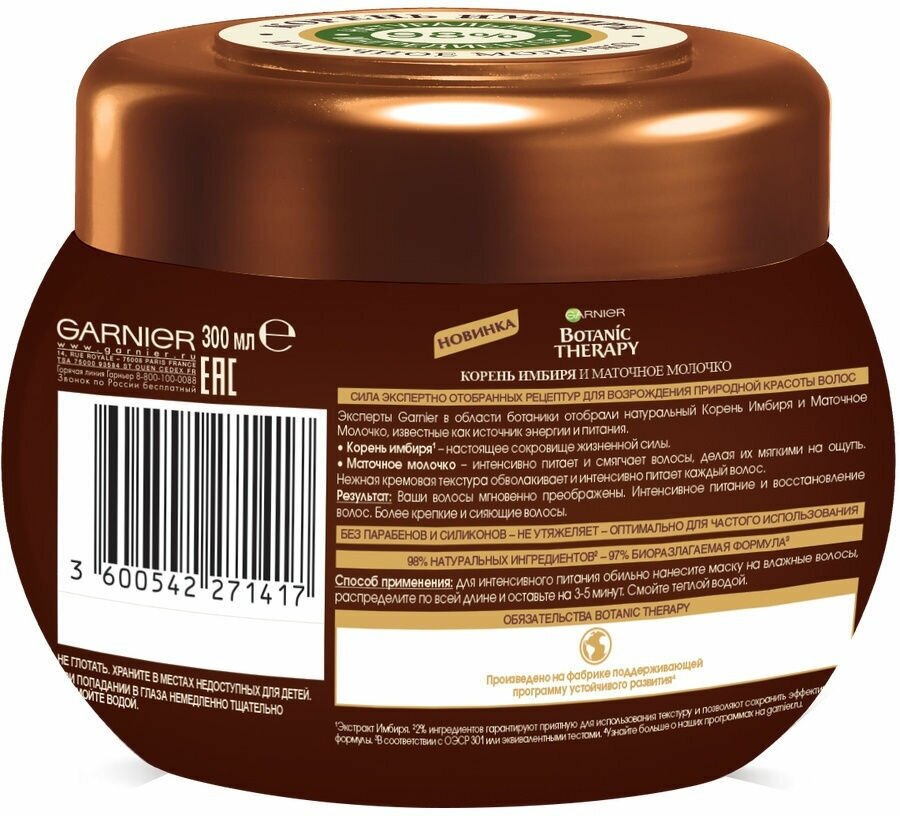 Сервис сравнения цен СкидкаГИД предлагает сравнить цены на товар «Маска для волос Garnier Botanic Therapy Корень имбиря и маточное молочко 300мл»