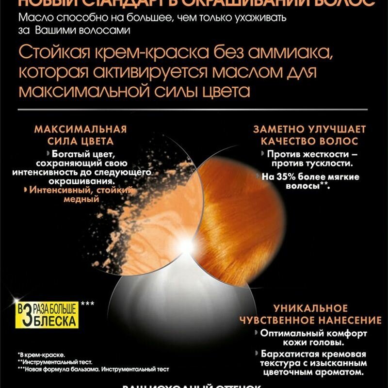 | Эффект | блеск; закрашивание седины |
