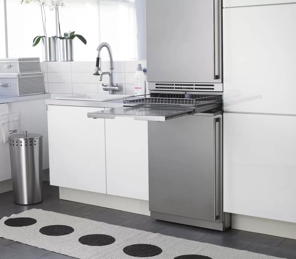 Выдвижная полка для стиральных и сушильных машин Pro Home. Устанавливается между ними в колонне. Съемная проволочная корзина для белья поможет перенести белье к месту стирки или сушки. Полка позволяет удобно рассортировать белье перед стиркой или выложить из машины после сушки. Встроенная конструкция без ручки цвета нержавеющей стали открывается нажатием на переднюю часть. Модель относится к серии аксессуаров Hidden Helpers.Модель предназначена для установки совместно со стиральной машиной W6098X. S. P и сушильной машиной T608HX. S. P