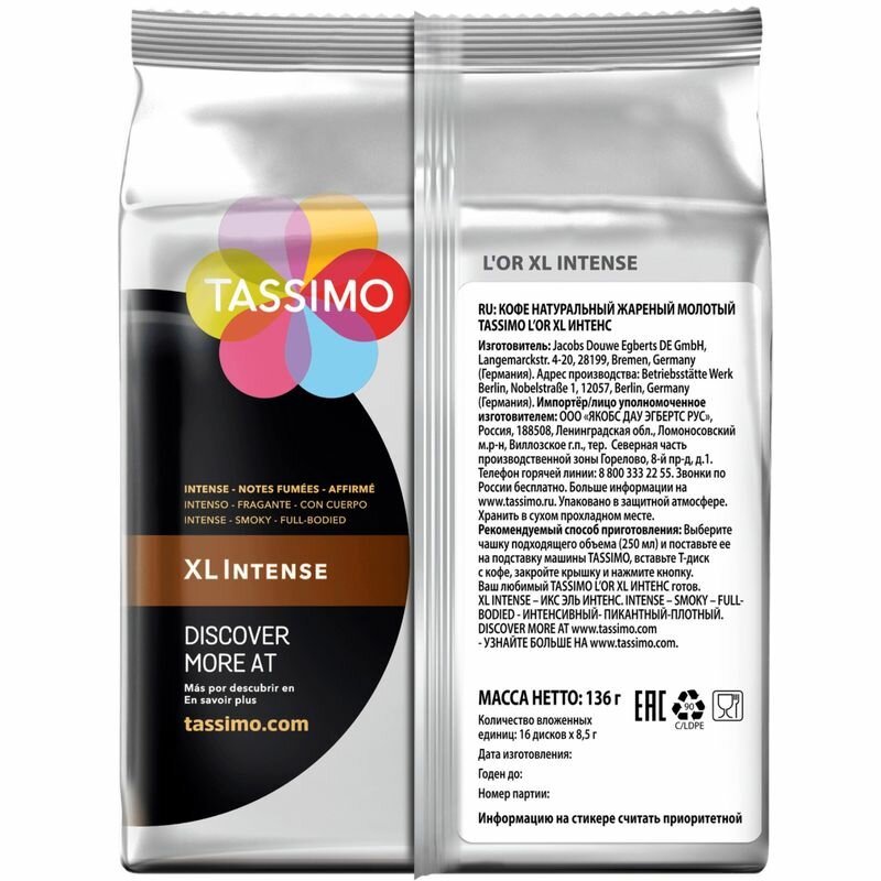 Кофе капсульный TASSIMO L’or Xl Intense капсулы совместимые с кофемашинами TASSIMO® 136грамм [8052168]