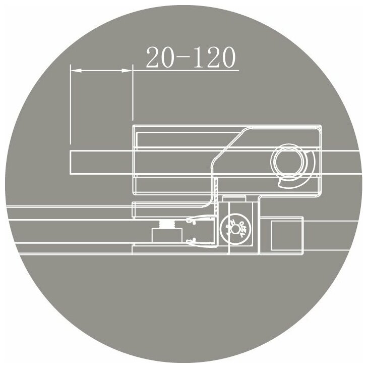 Оригинальная надёжная конструкция петли Slider позволяет регулировать ширину входа душевого ограждения в диапазоне 10 см.
