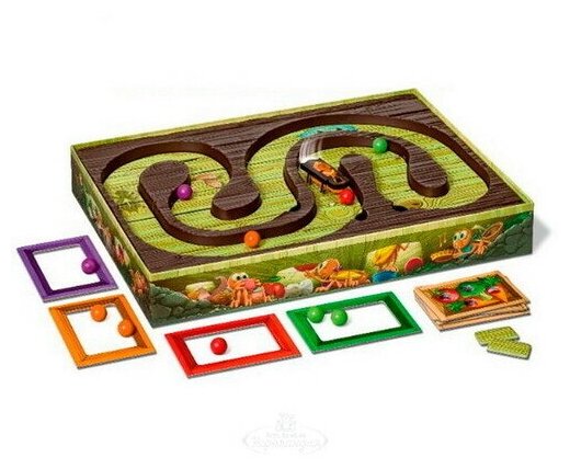 | Комплект игры | трёхмерная кладовка, половица, Мама -таракан, 16 крошек еды, 4 ячейки для еды, 4 картинки с ячейками для еды, барьер, инструкция. |