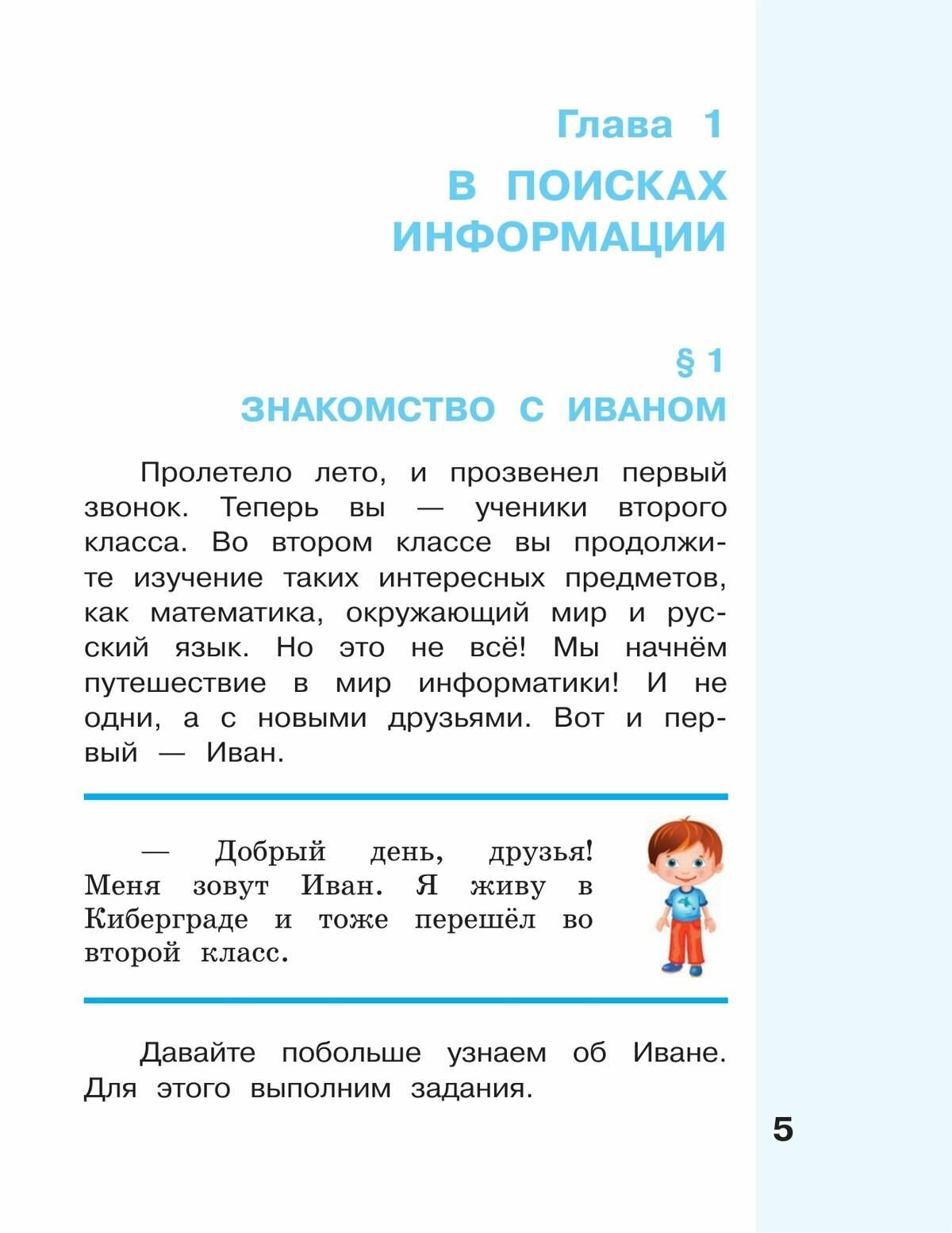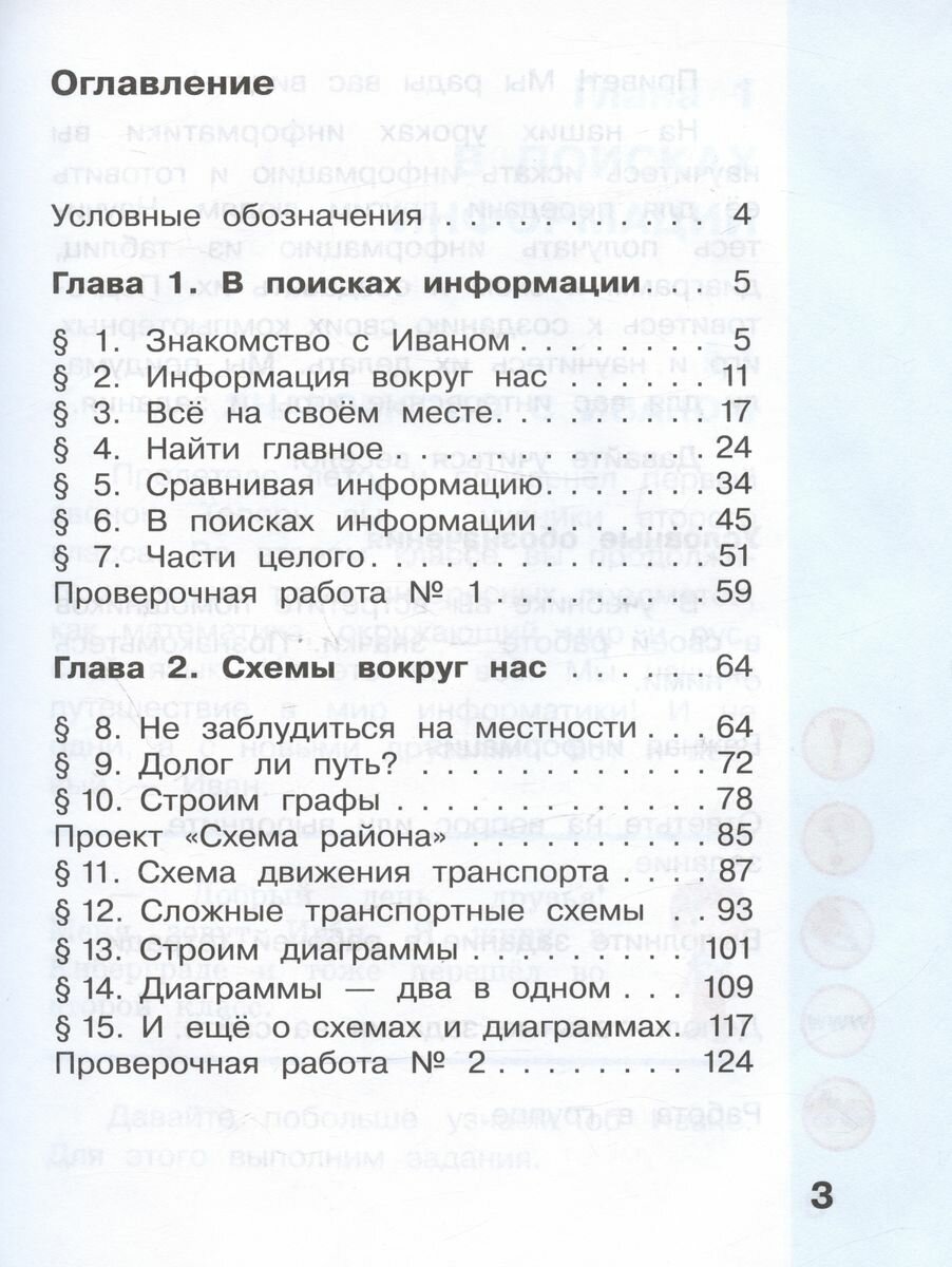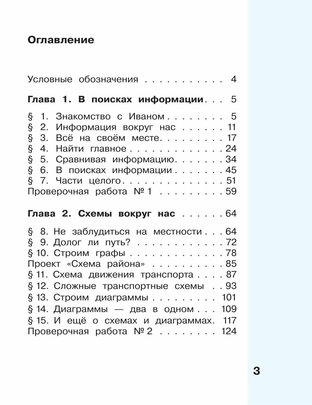 Учебник входит в состав учебно-методического комплекта по информатике для 2-4 классов, включающего примерную рабочую программу, учебники в печатной и электронной формах, рабочие тетради, методические пособия. Обеспечивает достижение предметных результатов предметной области "Математика и информатика": овладение основами логического и алгоритмического мышления; умение работать с таблицами, схемами, графиками и диаграммами; умение представлять, анализировать и интерпретировать данные; приобретение первоначальных представлений о компьютерной грамотности. Способствует формированию метапредметных результатов: освоению способов решения проблем творческого и поискового характера, овладению логическими действиями, умению решать коммуникативные и познавательные задачи с использованием средств ИКТ.