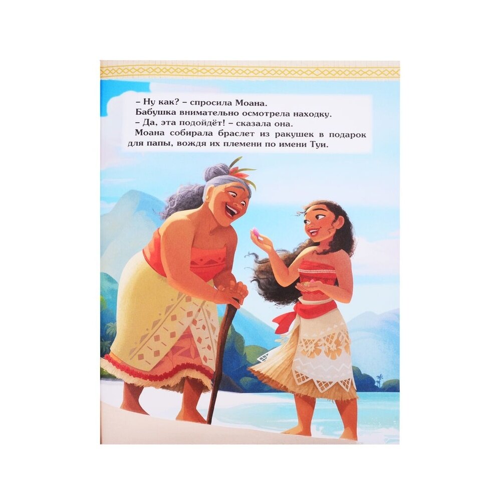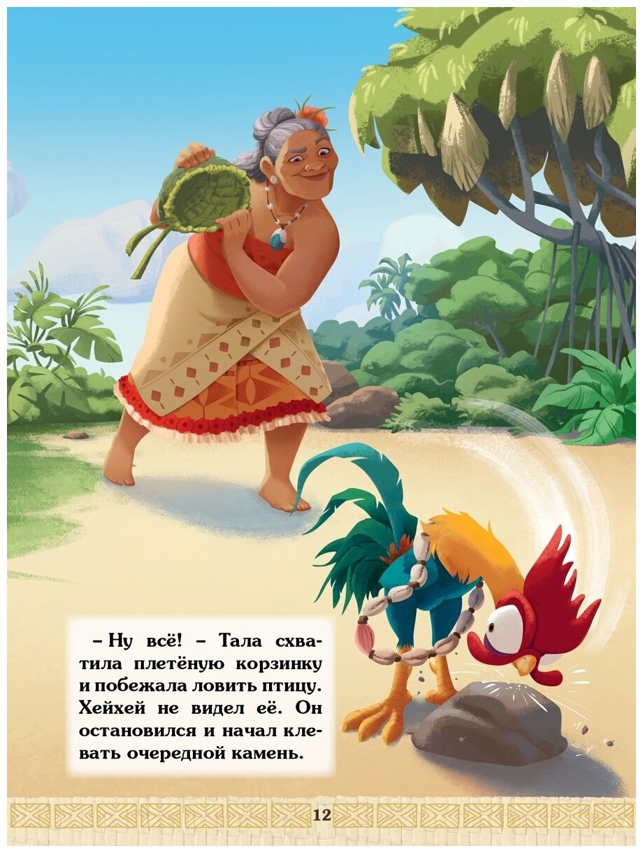 История-продолжение (точнее просто подробности, которые нам не показали в экранизации) про любимую отважную Моану и ее верных друзей, петушка Хейхея и поросенка Пуа. И мудрую и любящую свою отважную внучку бабушку Моаны вновь очень приятно увидеть. В книге не только история, но и раскраски. Очень красивые иллюстрации. Приятные на ощупь страницы.