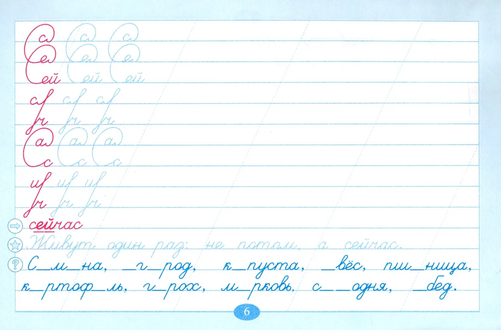 Основу чистописания составляют росчерки (с них начинается каждая страничка). Они направлены на отработку соединений букв, которые дальше лежат в основе словарного слова (слов). Работа со словарным словом ведётся согласно методике преподавания русского языка в начальных классах (тема урока).