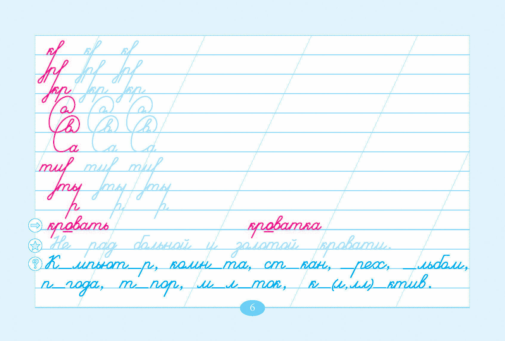 Внизу страницы дана пословица, в которую включено изучаемое слово. Бледный цвет необходимо обвести (росчерки и пословицы).