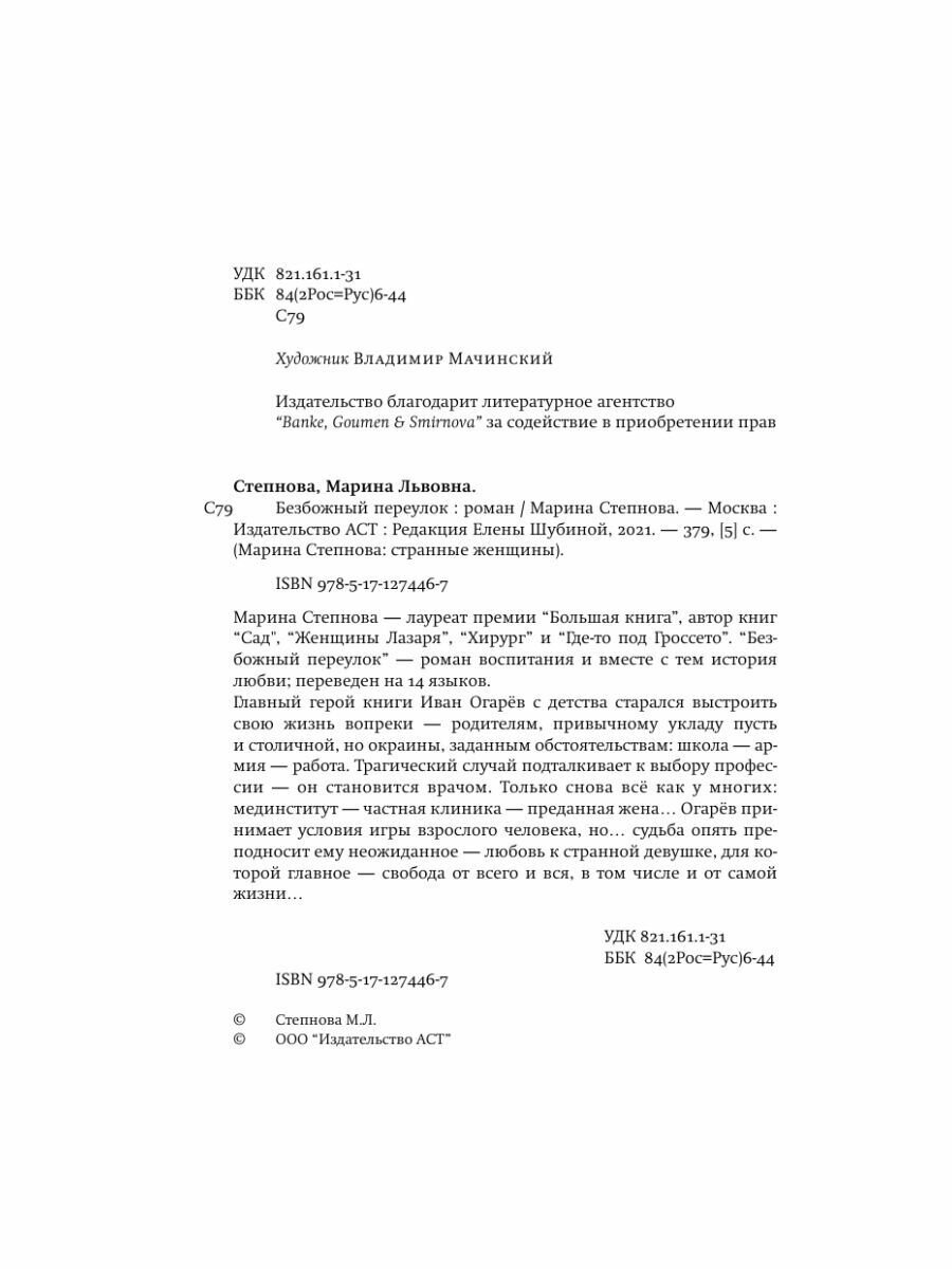 Книга: Безбожный переулок (Марина Степнова); АСТ, Редакция Елены Шубиной, 2023