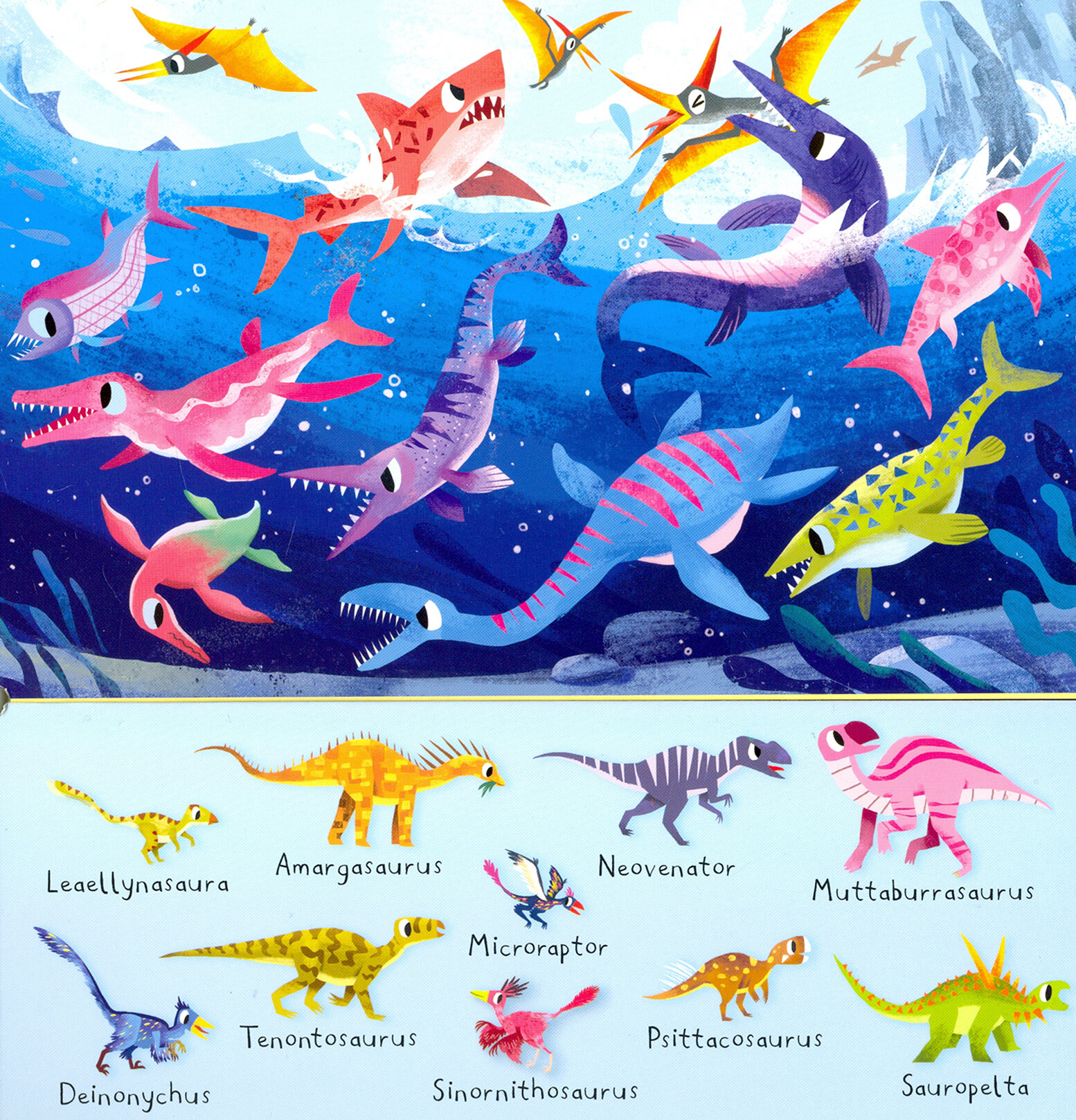 There are 101 Dinosaurs in This Book is perfect for children 2 years+ who are discovering the world around them. Split flip-flap pages encourage spotting and finding skills as little ones match up each set of dinosaurs and prehistoric creatures with their natural habitat and learn their names.