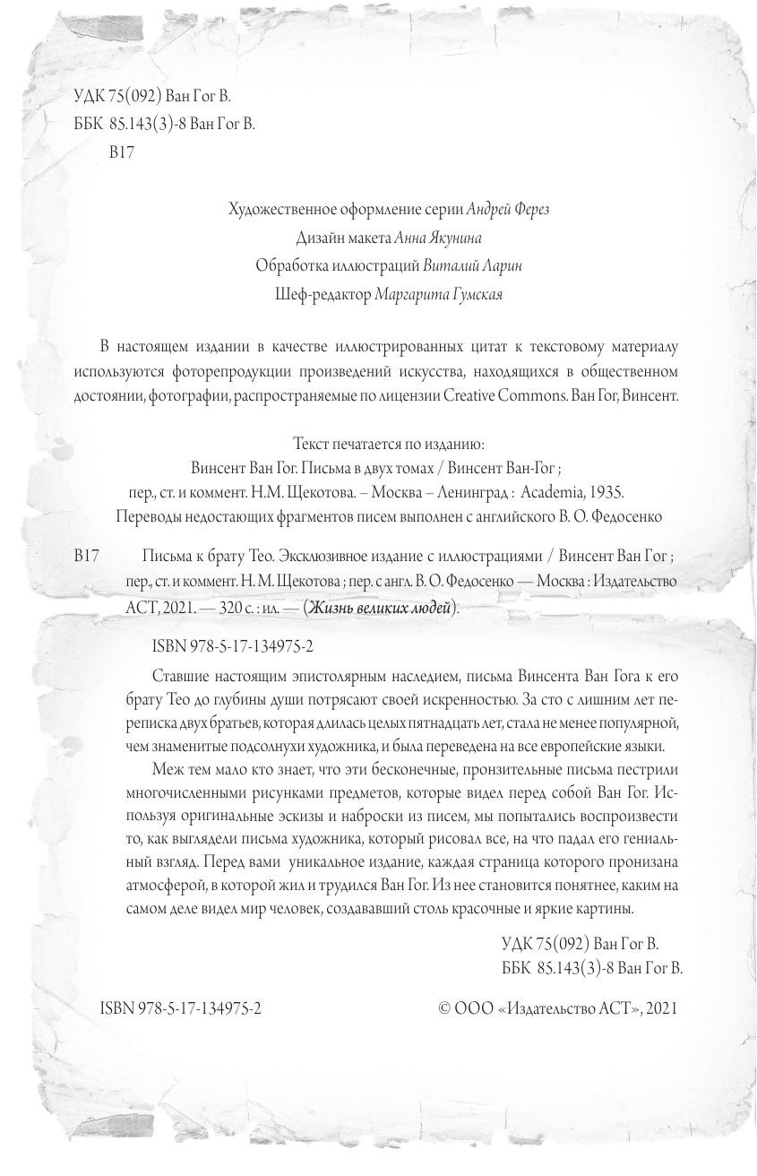 Впервые с письмами Ван Гона познакомилась через книгу Издательства ЭКСМО Пресс, и была в восторге. Но это издание принципиально другое, не знаю насколько содержание писем одинаково, но это и не важно. Главное то, что через такую печать, через иллюстрации, письма становятся живыми. Также здесь очень много полезных сносок и отступлений, которые считаю очень важными. Да, есть опечатки, но в этом случае готова на них закрыть глаза. Всем рекомендую, считаю что такое уникальное издание должно быть у каждого кому эта тема близка. Лично я срочно заказываю второй том. Фото не прикладываю, здесь их достаточно))