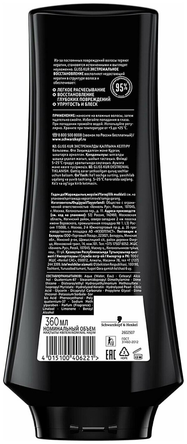 Бальзам для волос Gliss Kur Экстремальное восстановление 360мл Хенкель