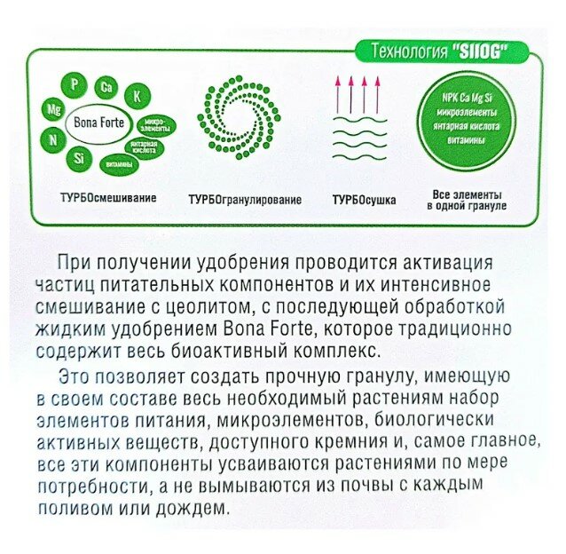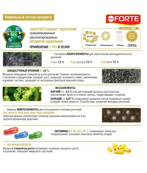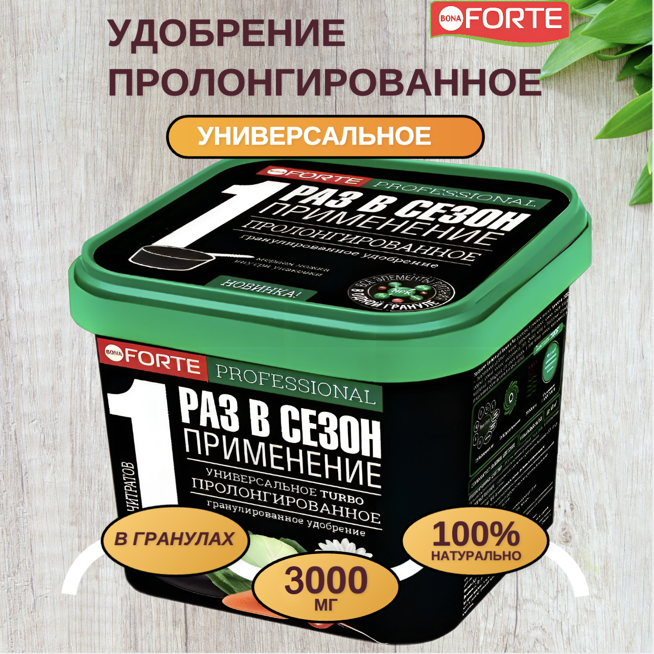 BONA FORTE Professional TURBO - минеральное удобрение универсального назначения. Гранулы содержат основные питательные элементы в легкоусвояемой для растений форме: витамины, фосфор, магний, азот, калий, кальций и др.