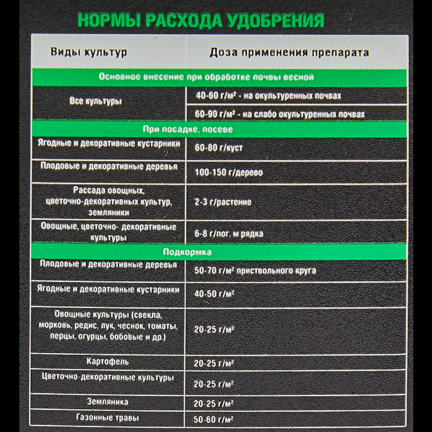 | Тип культуры | для декоративных растений, для картофеля, для корнеплодов, для плодово-ягодных культур, для плодовых деревьев, универсальный, для ягод, для садовых цветов, для садовых растений, для земляники, для овощей, для газона |