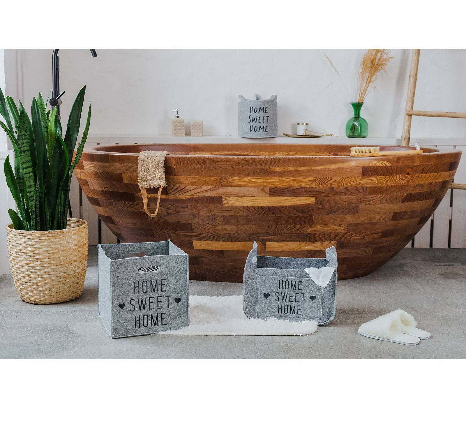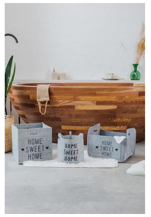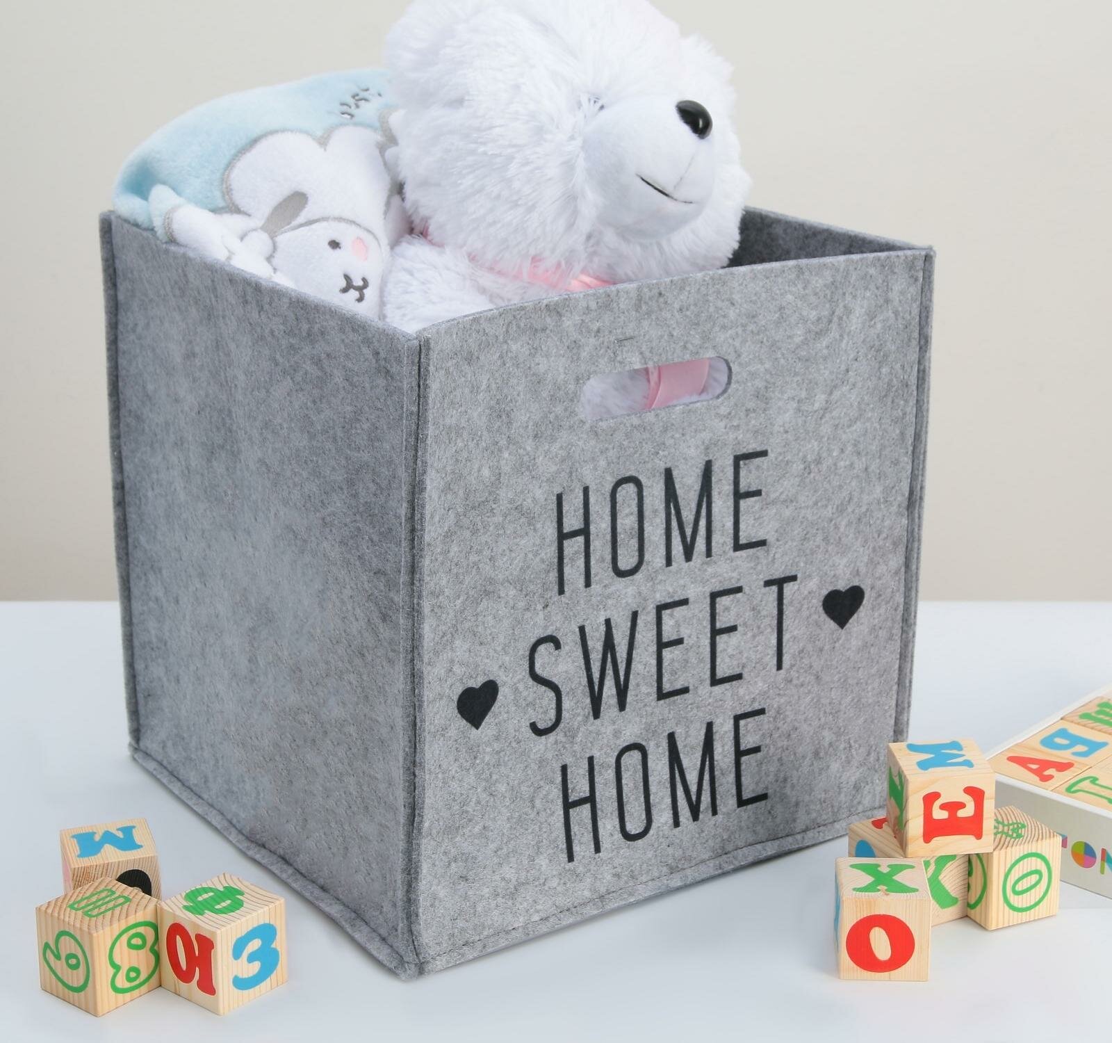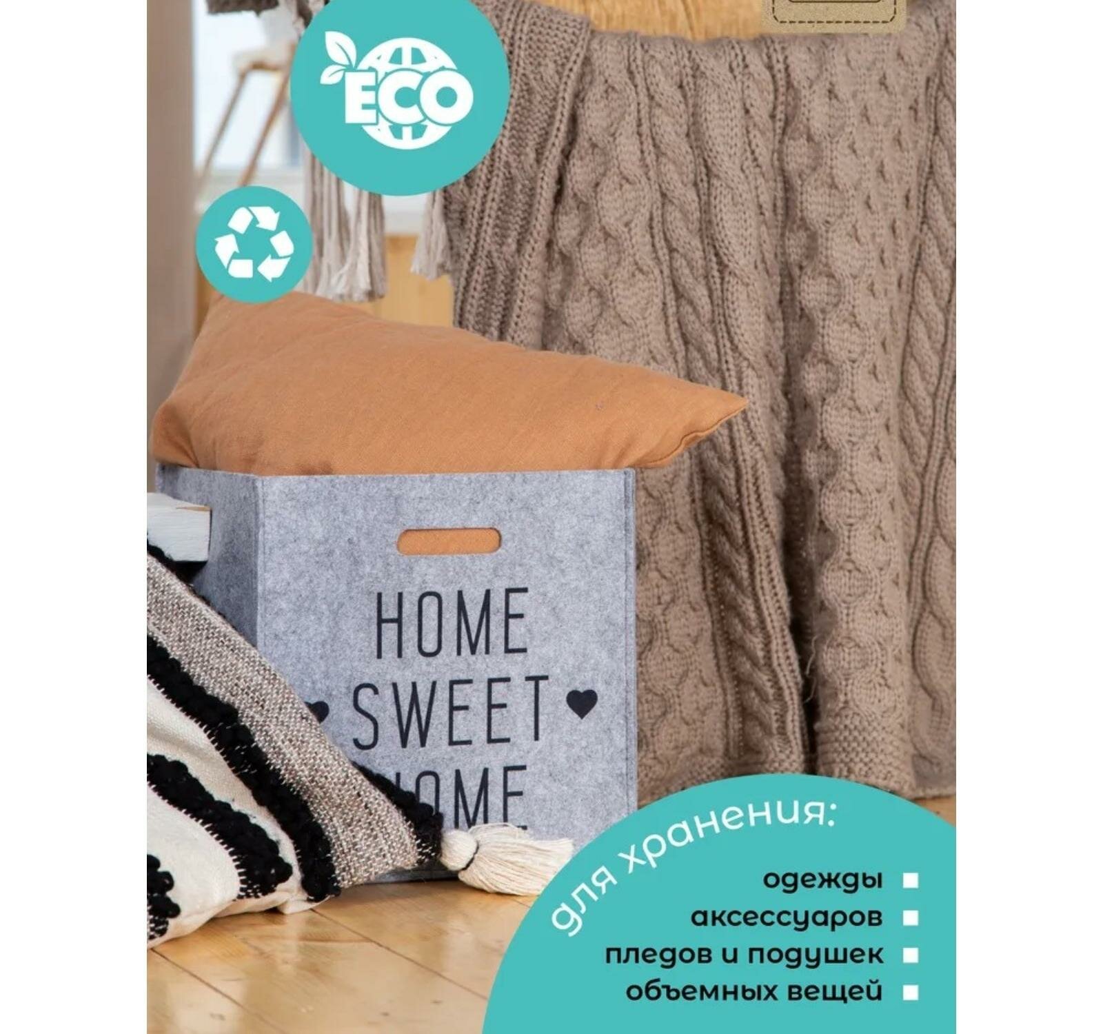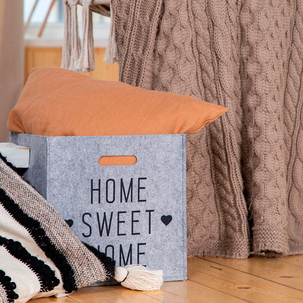 Органайзер среднего размера в виде короба с удобными ручками для переноски и уютным принтом HOME SWEET HOME - не только украшение интерьера, но и желанный помощник для хранения вещей в любой комнате - от прихожей до ванной и спальни.
