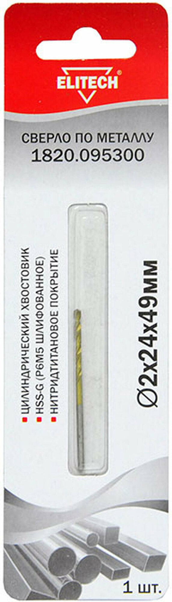 Сверло по металлу ELITECH 2х24х49мм,HSS-G, нитридтитановое покрытие, 1шт