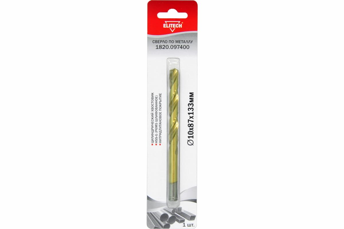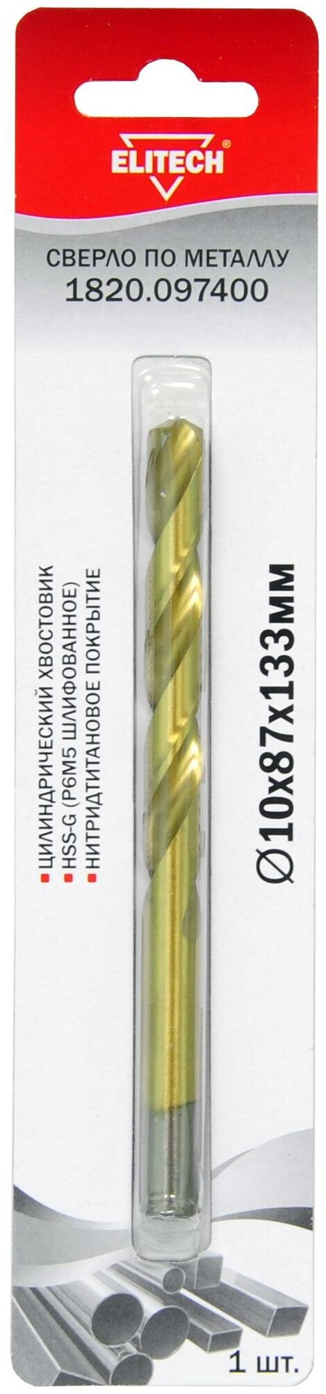Сверло по металлу ELITECH 10х87х133мм,HSS-G, нитридтитановое покрытие, 1шт