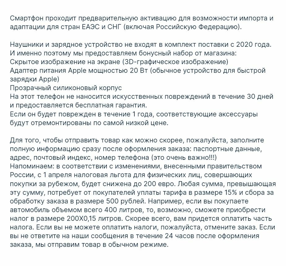| Комплектация | iPhone с iOS 14, кабель USB Type-C/Lightning, документация |